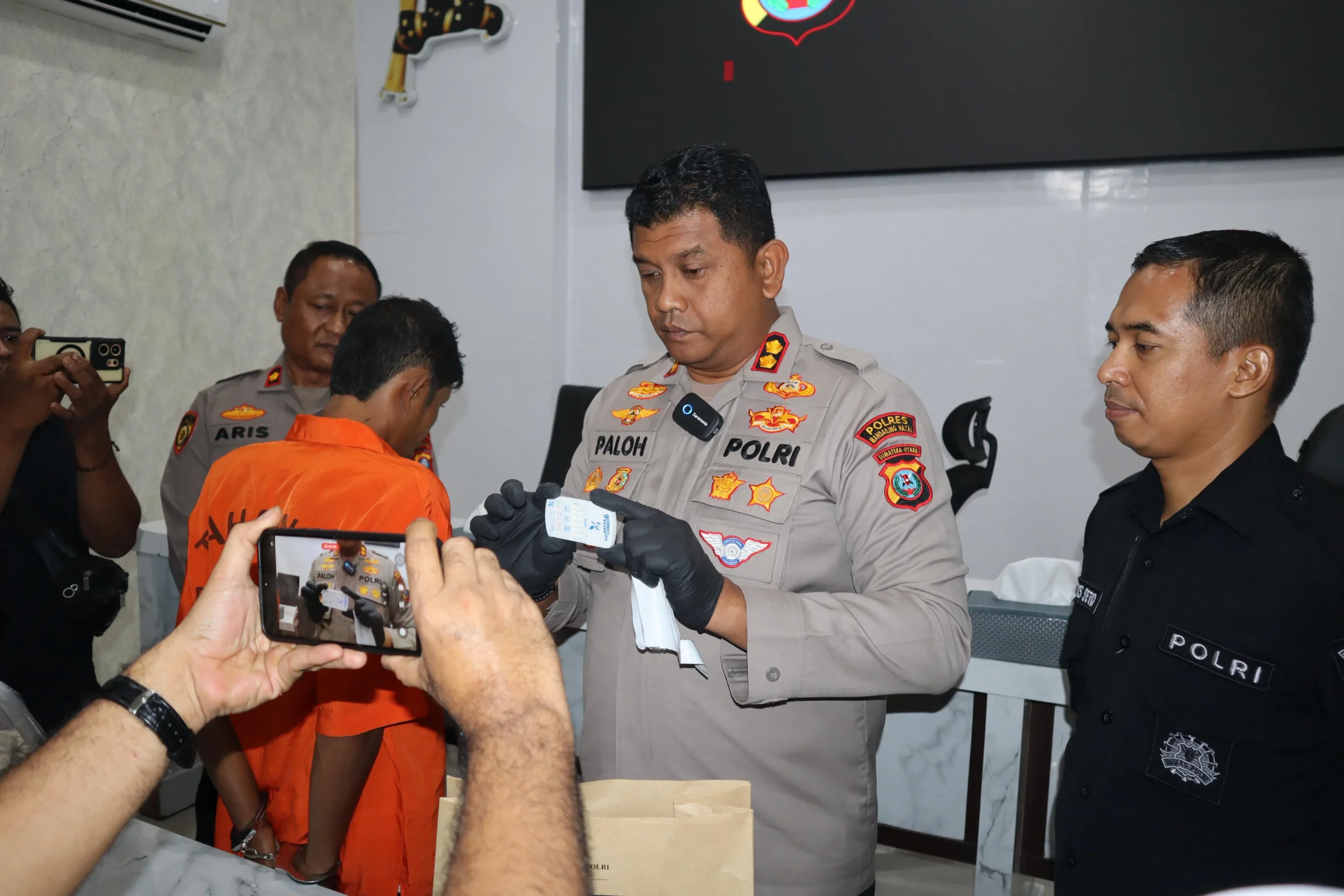 Kapolres juga menyebut hasil tes urin MS di Polres Madina, hasilnya pelaku positif pengguna narkoba jenis sabu-sabu.