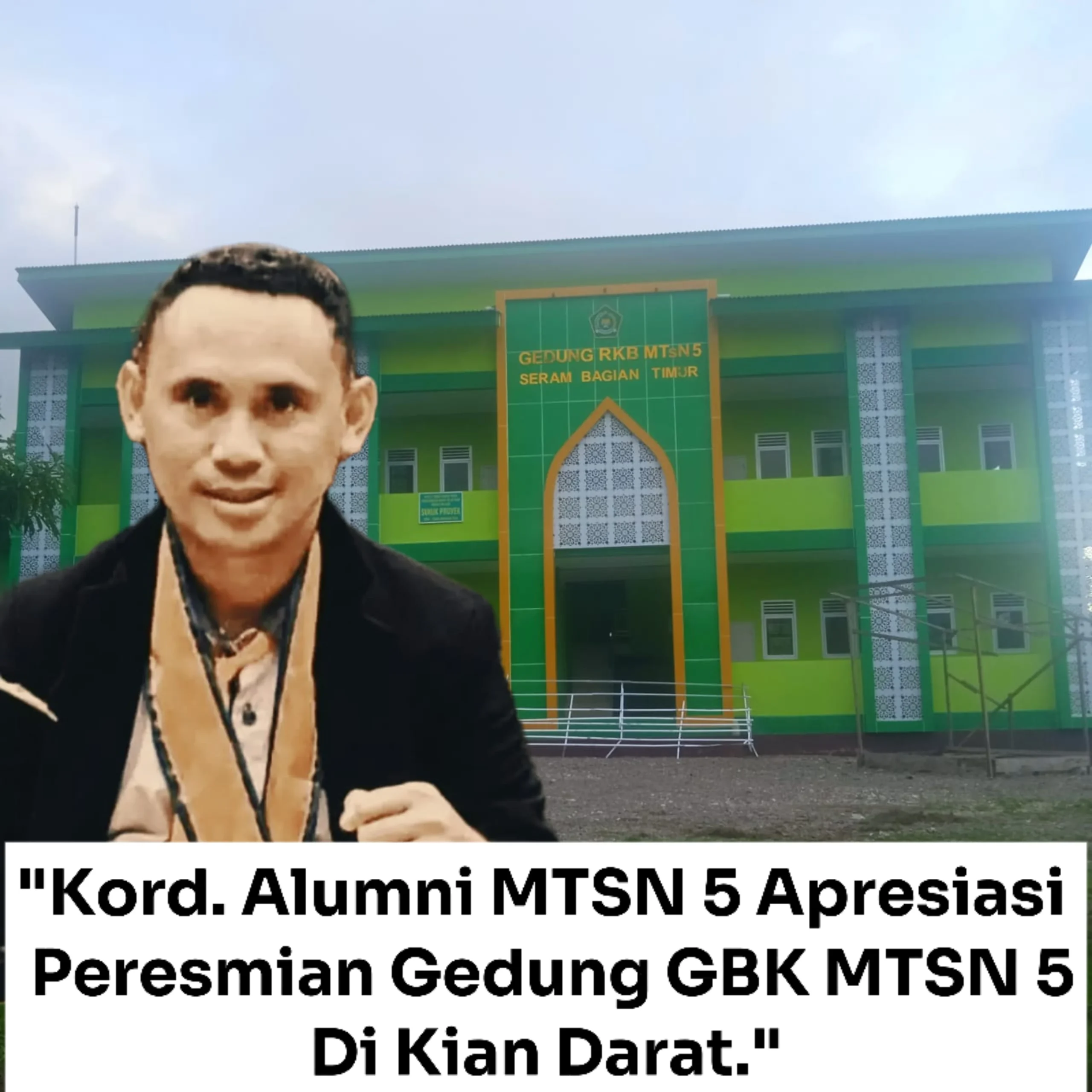 Koordinator Alumni MTSN 5 M. Yani Kella S. IP . Menyampaikan, peresmian gedung RKB MTsN 5 menjadi catatan penting demi mewujudkan semangat dan cita-cita pendidikan di tanah Kian Darat. Semoga kehadiran peresmian gedung pendidikan baru ini di manfaatkan secara optimal para guru dan Siswa-siswa dengan baik